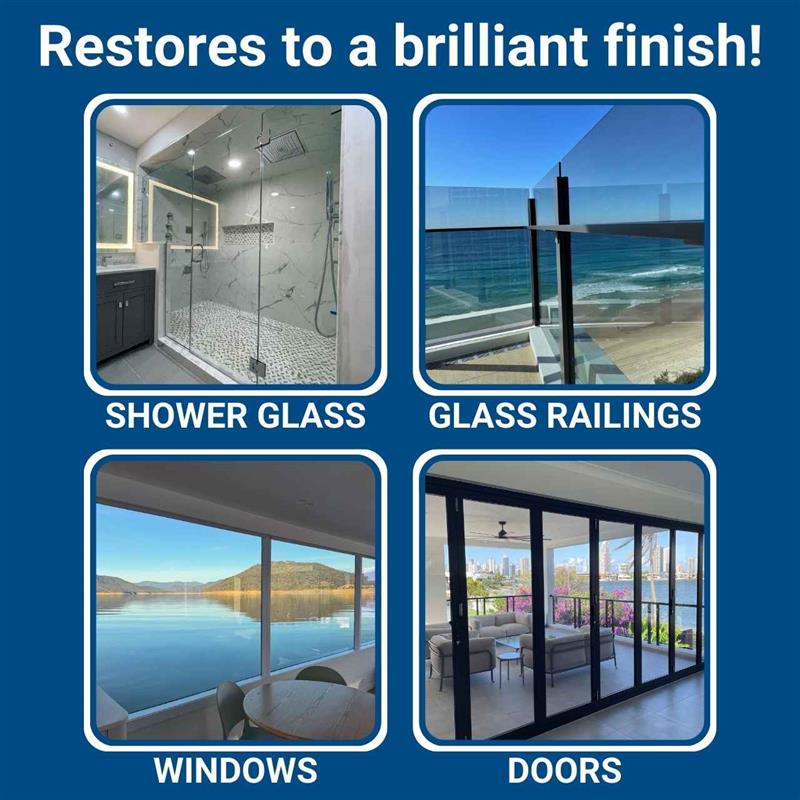 The Restoration Polish is recommended to be used before applying the Glass Treatment, Tile & Grout Treatment or Stainless Steel Treatment if the surfaces have stubborn stains or watermarks. This will provide a fresh base for the treatment to be applied to.